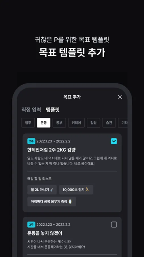 어떤 목표를 세워야 할지 모르겠다면 템플릿을 활용해보세요.