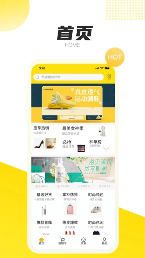 “首页”,类似于普通商城首页,可以查看最新的活动,浏览最新打折,热卖的鞋品