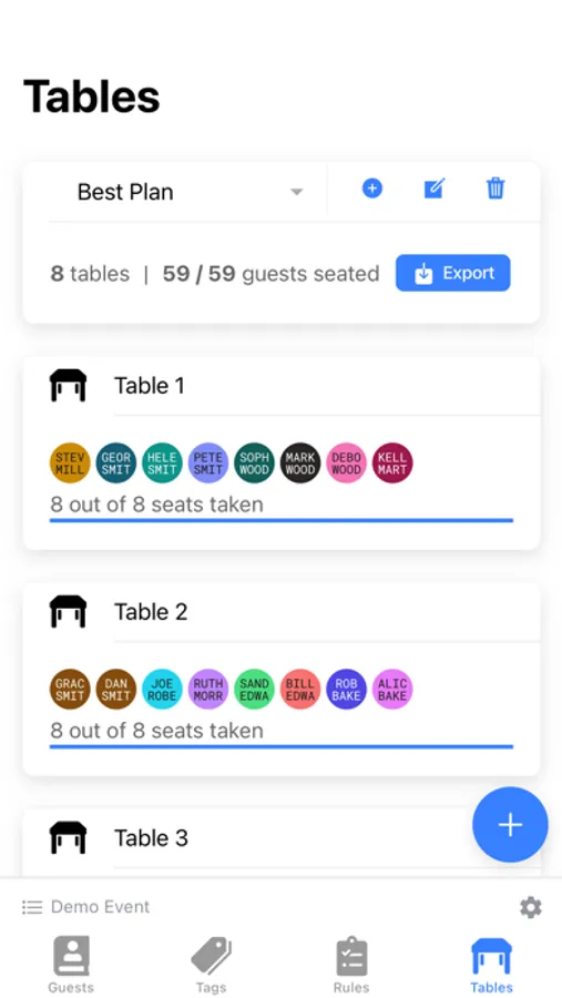 - Set up your tables and then create different seating plan variations to find what works for your guests