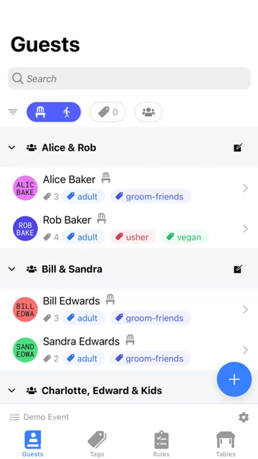 - Assign tags to guests to make it easy to organise groups of people, e.g. friendship groups, family members, social circles, dietary needs and more