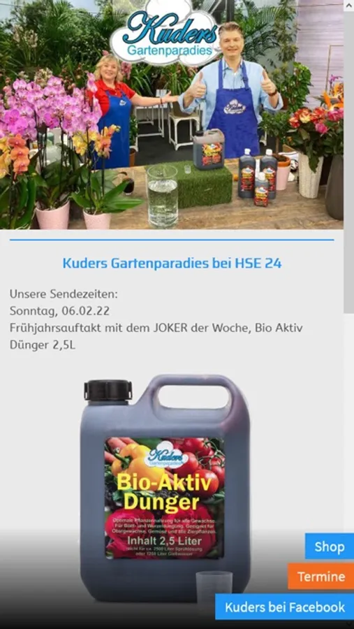 Immer auf dem aktuellen Stand sein. Alle Sendetermine bei HSE, alle Produkte inkl. Pflanzanleitungen und alle Angebote im Kuders Gartenparadies Shop. Hier verpassen Sie nichts mehr.
