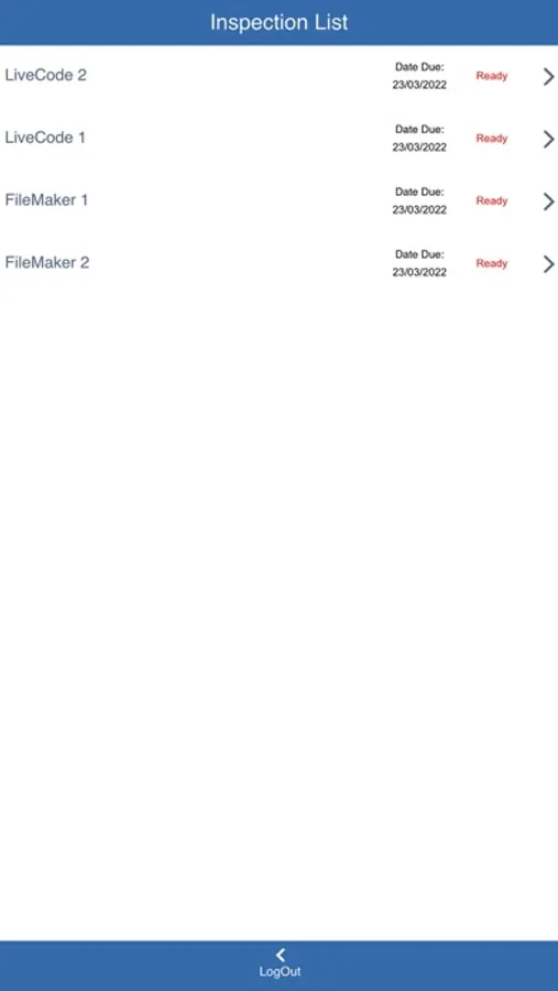 This app allows inspection and maintenance of fire safety equipment on various sites. Operatives can sign on, carry out a checklist inspection and sign off on a site.