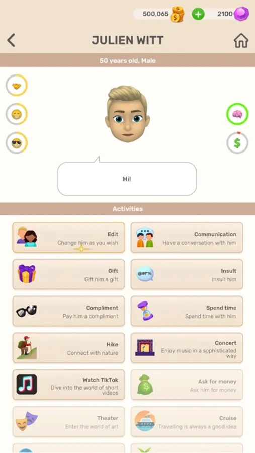 Immerse into the virtual life of this idle sim - make different decisions, adopt any lifestyle, go from poor to rich, aim for a career of success and fame and engage in exciting situations. This is a simulator game and you are the one to decide your fate from the little till the end.