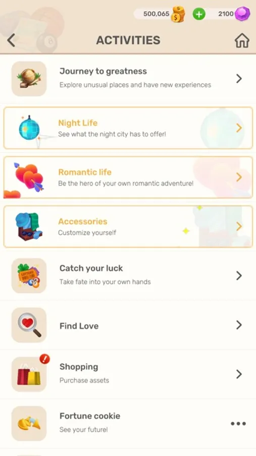 The world is yours to make any decisions and create a new dream life simulation. Spin a fortune wheel and see what virtual life has prepared for you this time. Try different simulation paths, play the game and get anything you want: from nice jewelry to a luxury penthouse - this is your lifestyle!