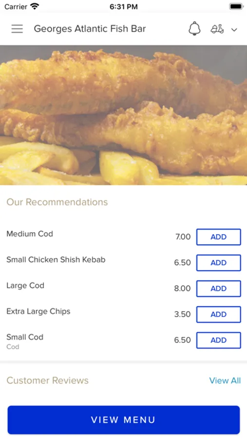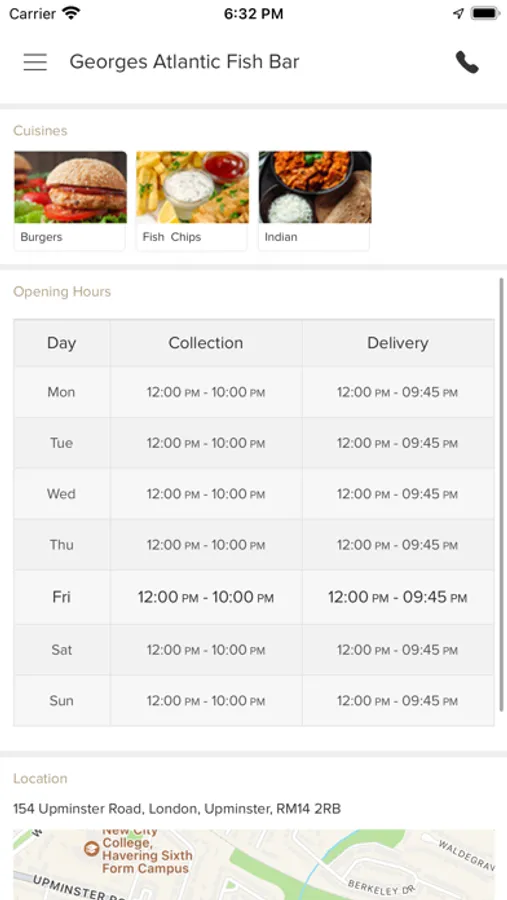 Georges Atlantic Fish Bar is located in Upminster . Here at Georges Atlantic Fish Bar, we’re proud to offer some of the tastiest fish and chips in the UK - on our menu you can also find all your other chip shop favourites such as sausages, pies, and more! All our authentic food is freshly prepared with the finest ingredients, and cooked to perfection by our skilled chefs.