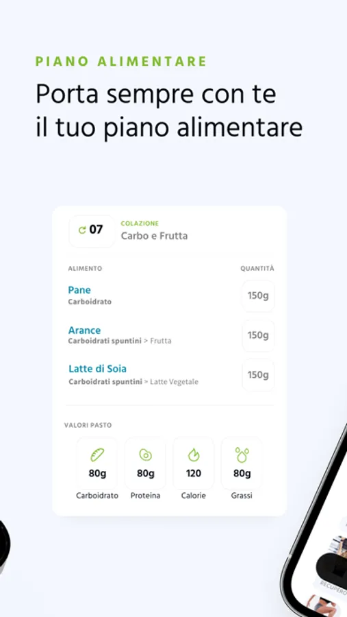 Grazie alle sue molteplici funzioni, come il piano con le categorie alimentari, il controllo pasto, la modifica dei pasti e la dieta flessibile, potrai imparare a costruire e modificare la tua alimentazione in base alle tue esigenze.