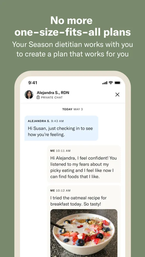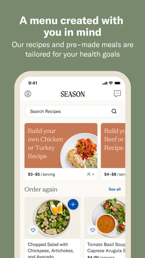 Season works by pairing you with one of our registered dietitians to discuss health concerns, set goals, and build a personalized nutrition plan. Then, you’ll explore our curated selection of recipes and affordable pre-made meals. Choose what looks good and have meals and ingredients delivered to your door. To stay on track, you’ll participate in our accredited education program and receive ongoing support from your Season dietitian.