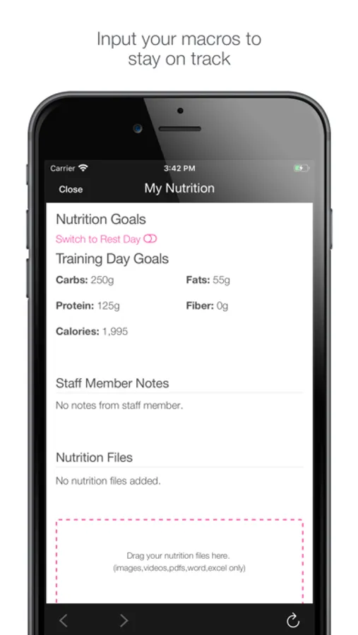 Macro clients will check in weekly by entering in progress photos, measurements, and My FitnessPal info right inside the app!