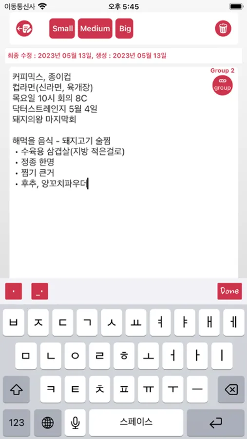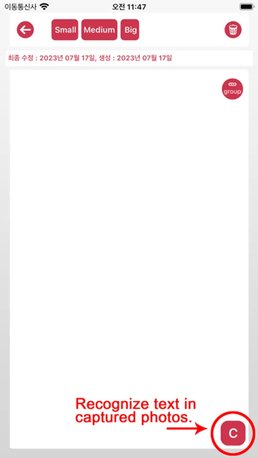 - When writing a memo, you can use the "C" button at the bottom right to recognize text in a photo taken using the camera and use it immediately.