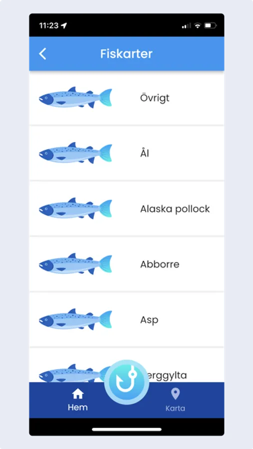 Endast relevant data för aktuell forskning, såsom fiskart, fiskeplats, storlek på fisk, fångad/släppt fisk och avvikelser med mera.