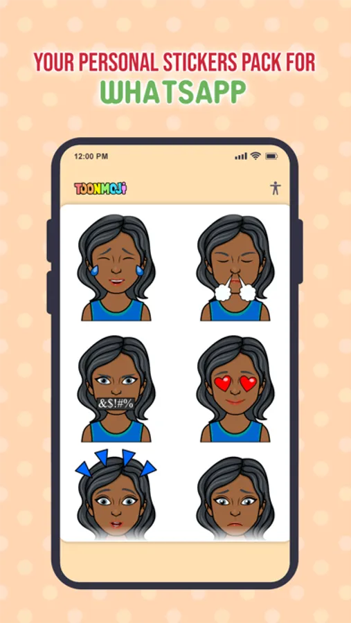 Make your own toon avatar stickers. Download and use it on Whatsapp and Snapchat