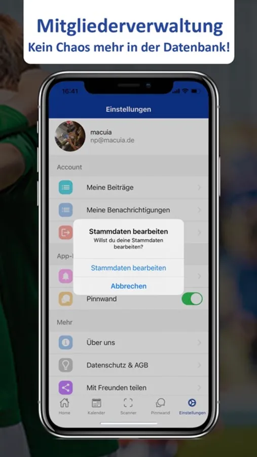App sofort kann jeder seine Daten jetzt selbst über die App pflegen.