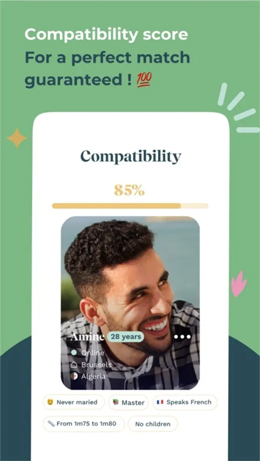 Since 2006, more than 100 couples are formed daily and many Muslim marriages are celebrated yearly! That's why our service is the N°1 Muslim dating application!
