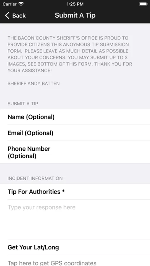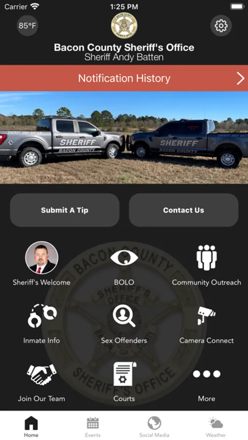 The Bacon County Sheriff’s Office mobile application is an interactive app developed to help improve communication with area residents. The Bacon County Sheriff App allows residents to connect with the Bacon County Sheriff’s Office by reporting crimes, submitting tips, and other interactive features, as well as providing the community the latest public safety news and information.