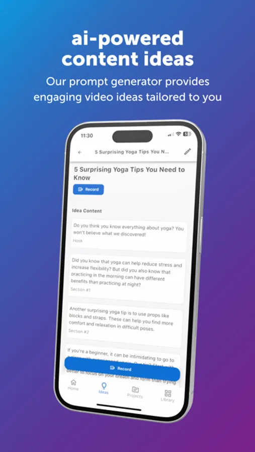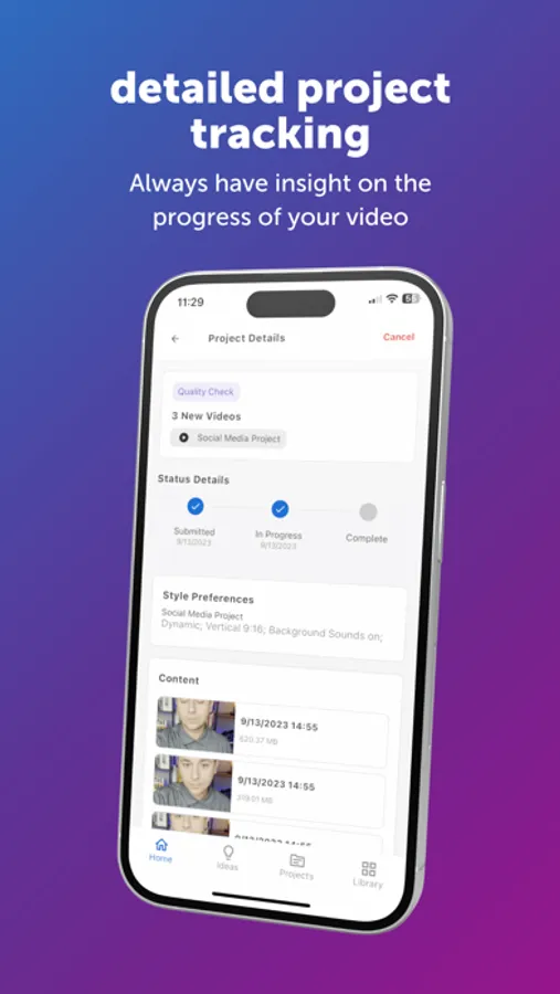 With the Storyy app, you can discover content ideas that matter to you, powered by AI but customized to you.. You can either craft videos right in the app or share your own content with us for a professional touch. We'll make sure to keep you in the loop about your content's progress and let you know when it's ready to shine in front of the world.