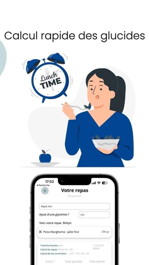Notre application vous permet de gérer votre diabète de manière simple et pratique. Encodez vos repas et voyez directement combien d’unités d’insuline vous devez prendre. Vous pouvez également calculer rapidement et facilement une correction à n’importe quel moment grâce à notre outil de calcul intuitif.