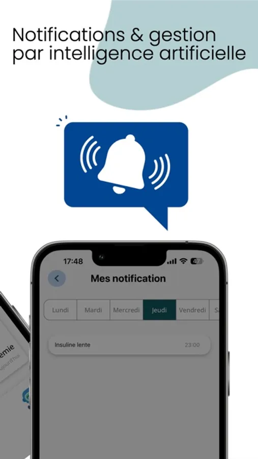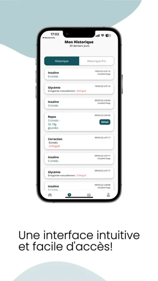 Notre application intègre également une intelligence artificielle qui vous fournit des résultats optimisés et vous envoie des alertes si votre moyenne n'est pas correcte depuis plusieurs jours. Vous pouvez également encoder vos ratios par tranches horaires personnalisables pour une gestion encore plus fine de votre diabète.