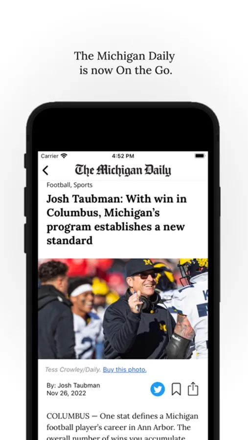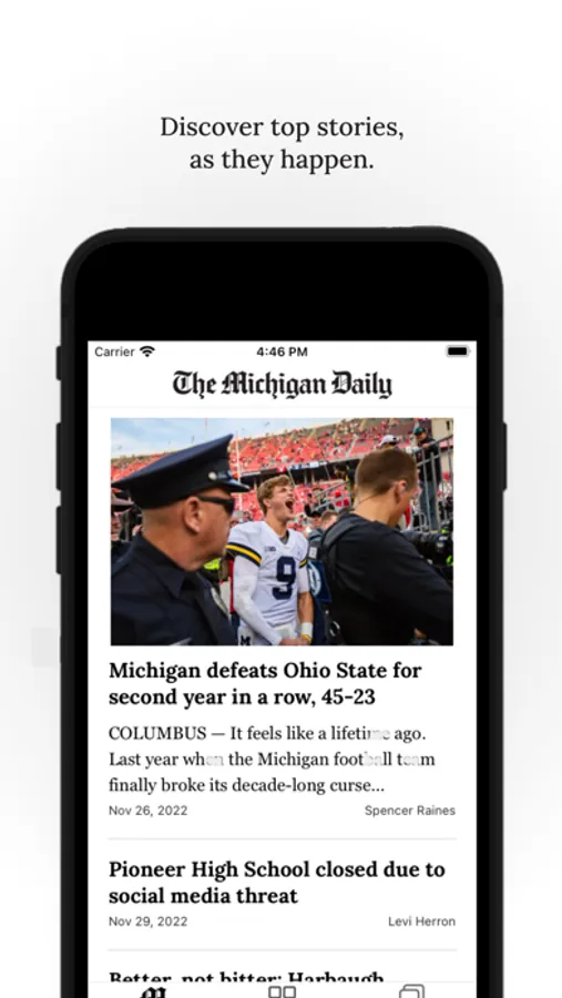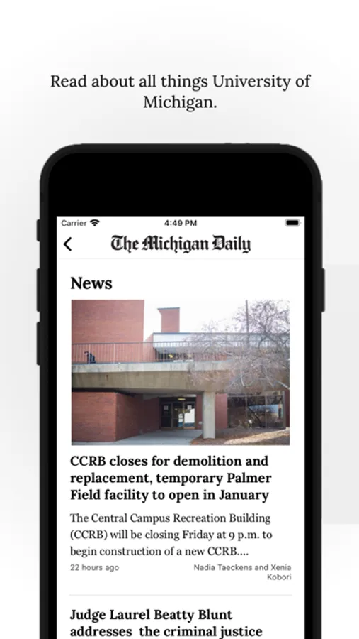 The Michigan Daily exists to inform the University of Michigan and the Ann Arbor communities about events and issues of consequence to the University and Washtenaw County. The app features content from our editorial staff and also sends push notifications to users about new content.
