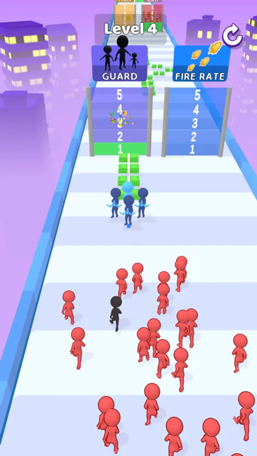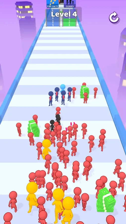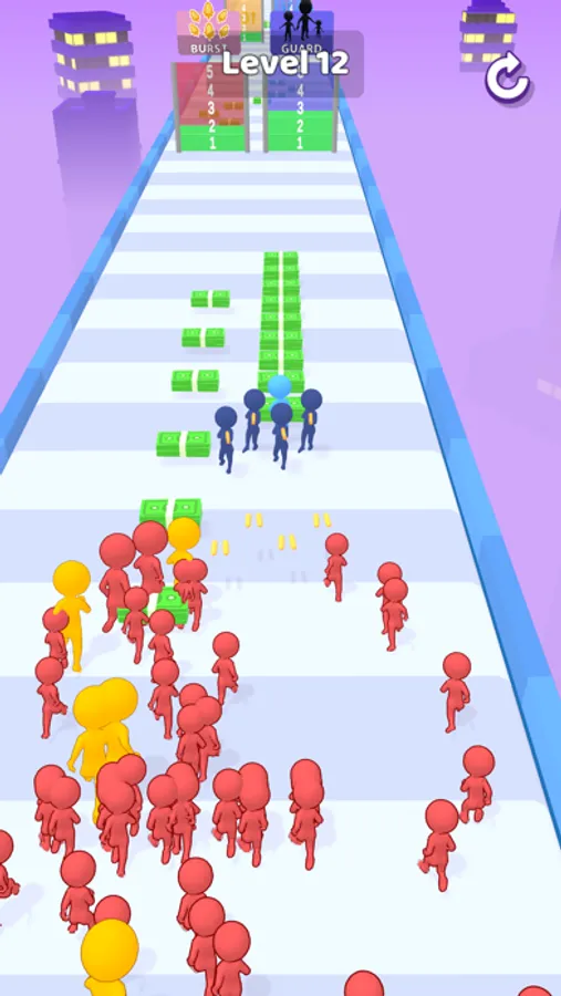 Buy guards with the money you stole, strengthen your guards and don't let the enemies approach you. Get in the van and run!