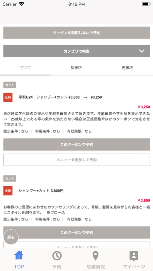 お得なクーポンが配信されます。ネット予約時にクーポン利用での予約も可能なので来店時もスムーズに施術頂けます。