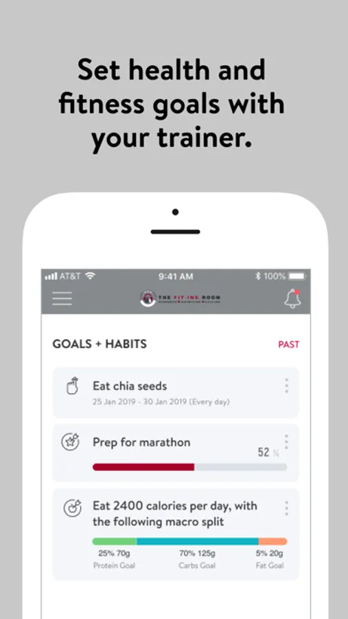 With The Fit-ING Room App, you can start tracking your workouts and meals, measuring results, and achieving your fitness goals, all with the help of your personal trainer.
