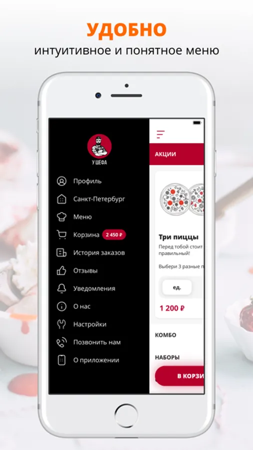 Скачивайте наше приложение, оформляйте заказ и наслаждайтесь любимой едой, где бы Вы ни были! Шеф желает приятного аппетита!