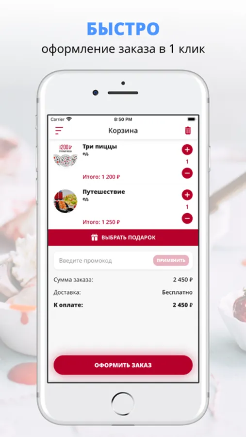удобная корзина и быстрое оформление заказа,