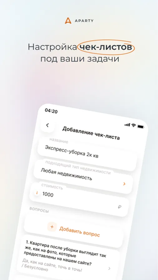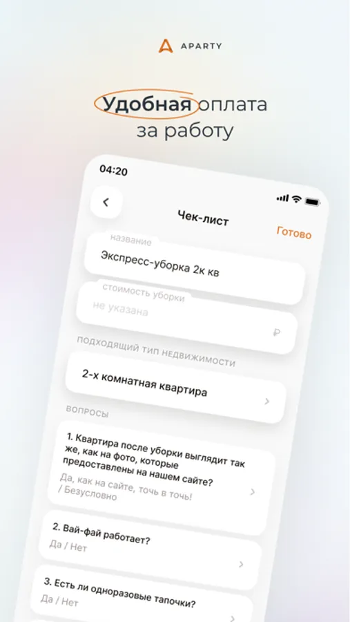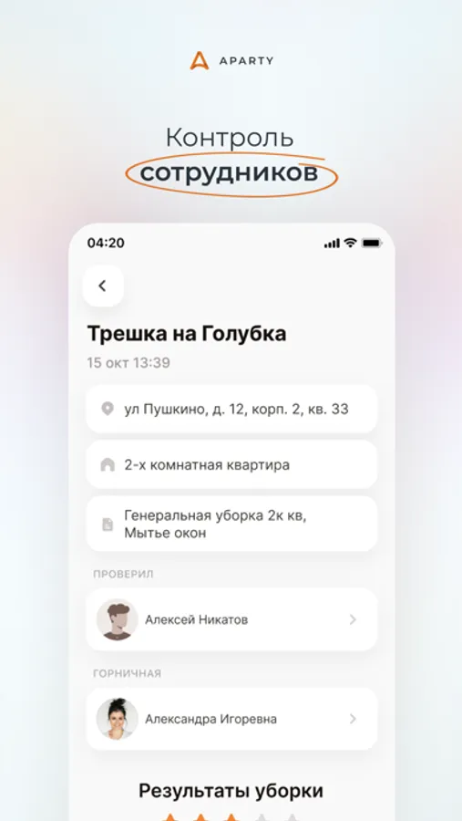 - Aparty следит за качеством уборки квартир и упрощает контроль. ****