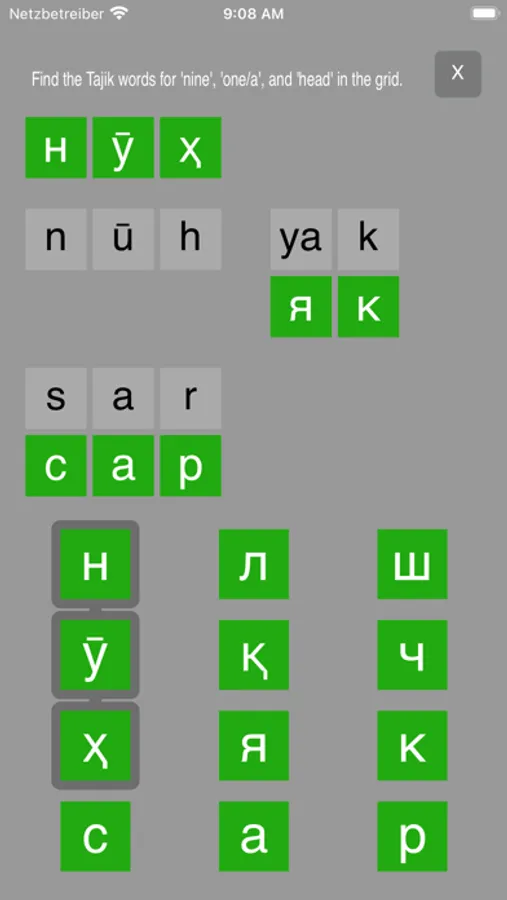 The primary goal of this app is to be able to effortlessly transliterate from Cyrillic to Latin script and vice-versa (and along the way you'll learn a few common Tajik words).