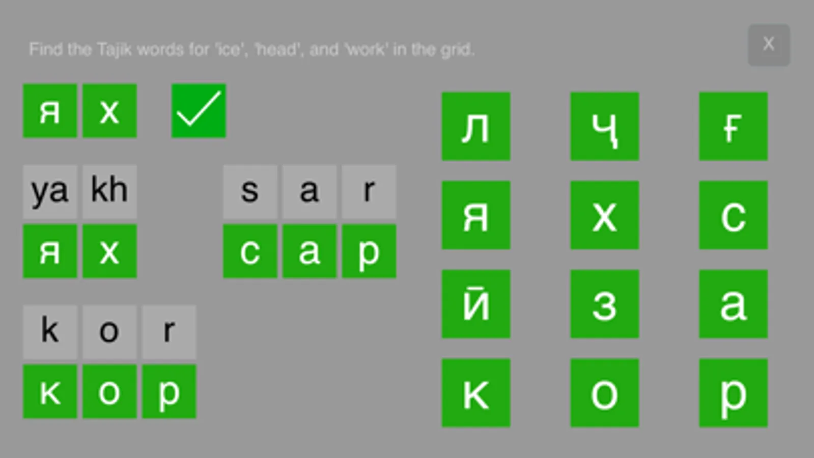 Word Search - use your Cyrillic skills to find words in a grid