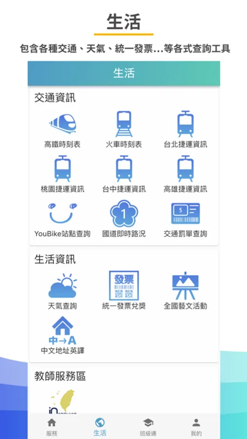 ・各種交通、天氣、統一發票…等各式查詢工具。