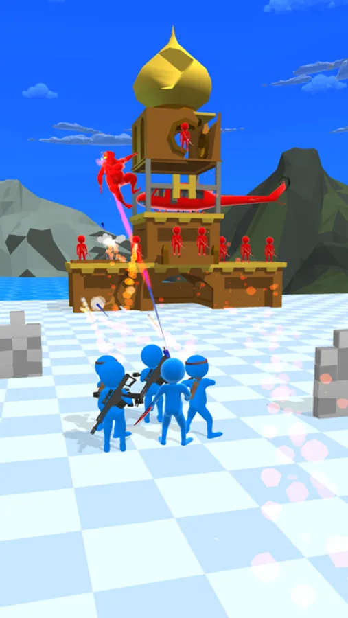 Stack the army and crash the tower. Use weapons like firearrows, snipers, rpg and more to beat the enemy and Win!
