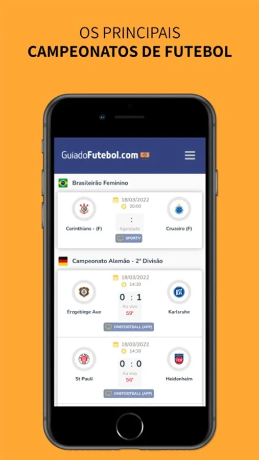 Nosso aplicativo Guia do Futebol é um Guia de Jogos de Futebol que mostra os Jogos de Hoje que serão exibidos ao vivo por algum canal, site ou APP. Veja também os horários a acompanhe as partidas de futebol ao vivo em tempo real.