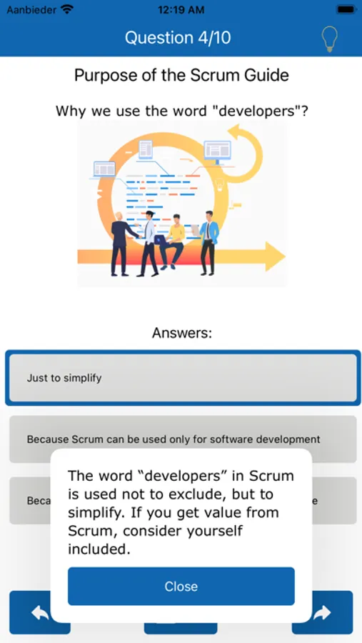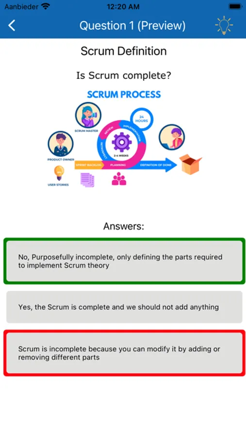 This app will help you to verify your Scrum knowledge and to prepare for Scrum certification.