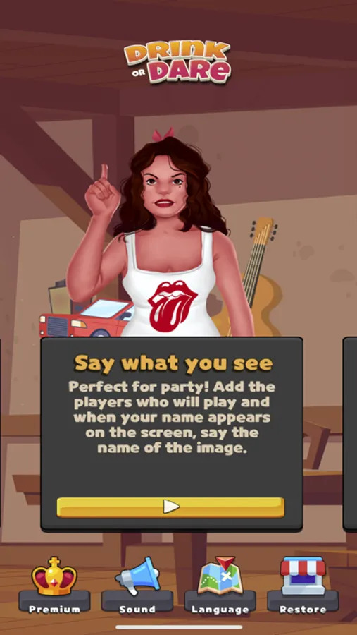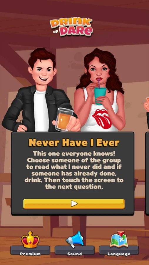Choose your drinks: beer, vodka, tequila or whatever you want! Take sips while playing!