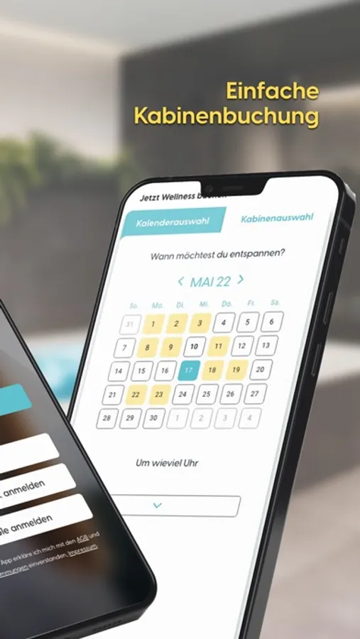 Buche ganz einfach Deinen Aufenthalt, verwalte Deine Buchungen direkt über die App und checke dich vor Ort in deine private Wellness Kabine ein.