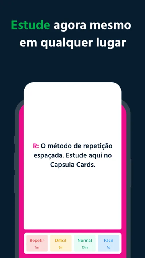 A Cápsula Cards utiliza a metodologia de repetição espaçada, um processo de aprendizagem comprovado, para ajudar no reforço do estudo e aprendizado rápido.
