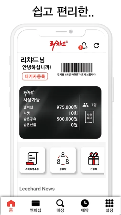 리챠드프로헤어 멤버십/티켓관련 발행 사용내역, 매장정보, 디자이너 휴무정보 정보제공, 리챠드 이벤트, 리챠드 쿠폰