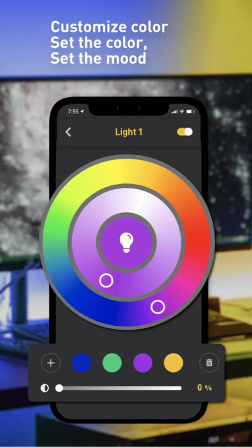 At home on your couch or 10,000 miles away you can adjust all your smart home lights settings. Just make sure you have a wifi connection and it's as easy as ever.