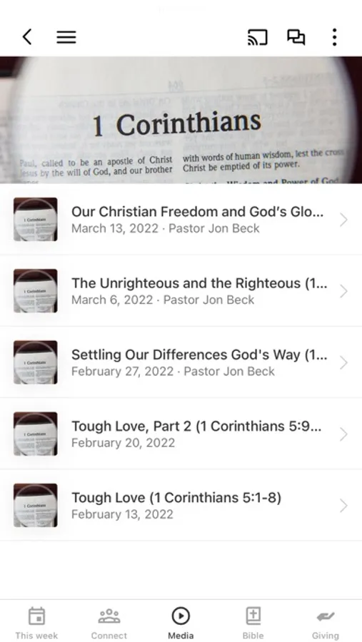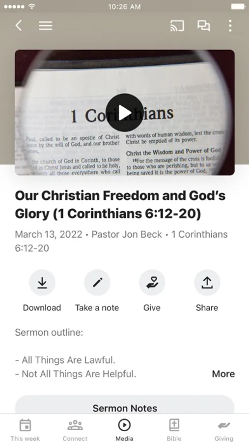 This app will help you stay connected with the day-to-day life of Tabernacle Baptist Church. With this app you can: watch or listen to past messages; stay up to date with push notifications; share your favorite messages via Twitter, Facebook, or email; download messages for offline listening and much more.