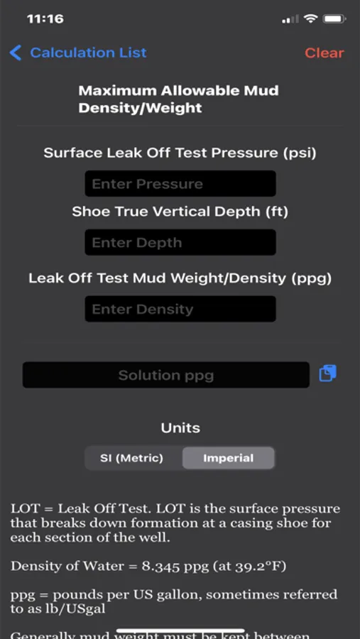 For use by professionals, students, and safety personnel in the upstream oil and gas industry. A simple and easy way to perform calculations of many common formulas used in oilfield operations such as drilling and well control. Calculations can be easily switched between imperial and metric (SI) units. Conversion factors for automatically converting units are also included. Great for situations when you don’t have access to formulas or desktop software. Also great for use in remote areas in the oilfield where there might not be internet access since the app has a self contained searchable list of many calculations.