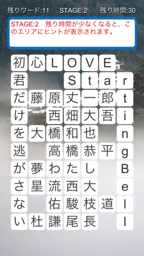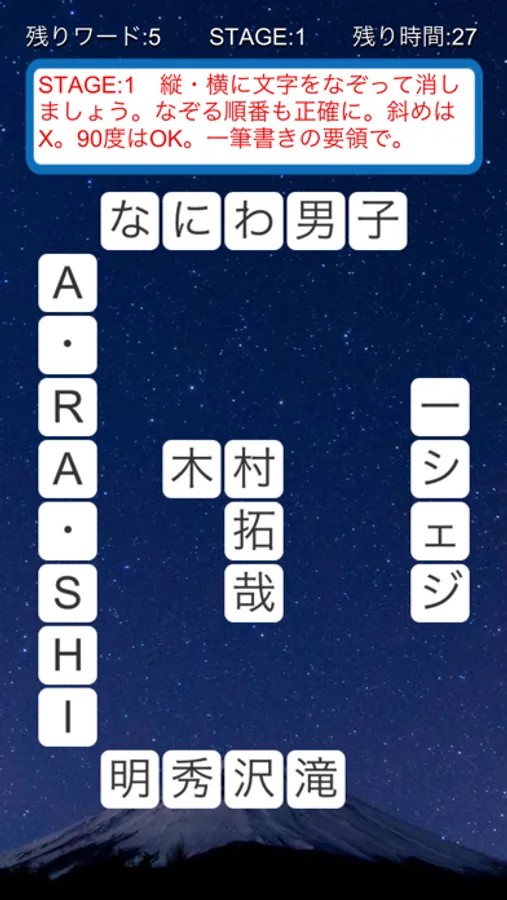 初めの文字から最後の文字まで、画面から指を離さず、一筆書きの要領で!