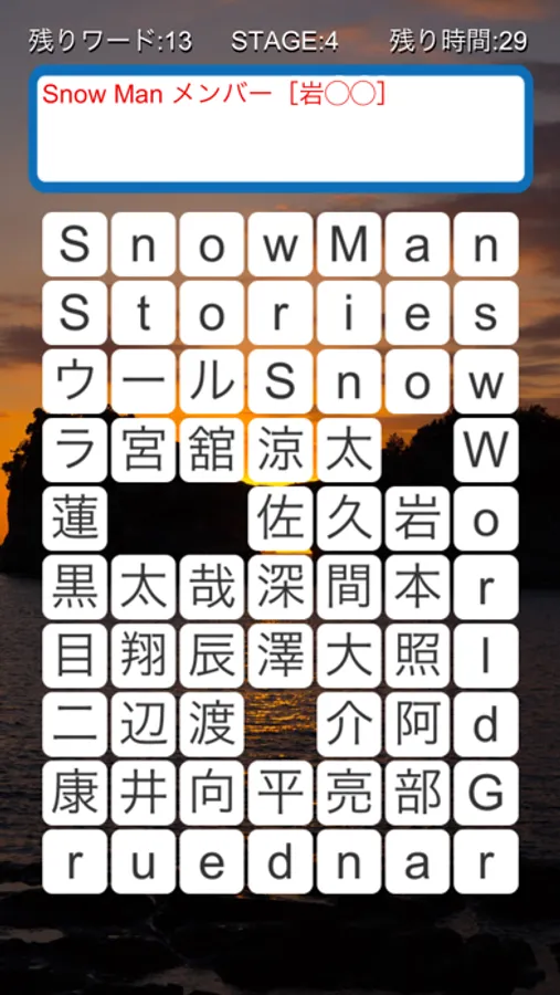 ジャニーズのグループ名、メンバー名、楽曲を探して、全ての枠を消してください。(解散したグループ、退所したメンバーも含まれています)