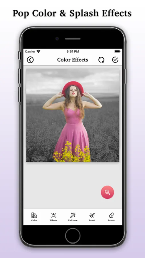 This app helps you to create color pop effects photos by converting it to black and white while keeping selected areas colourful with different type of splash effects and filters. With this color effect, you can also edit photos with photo filters and overlays.