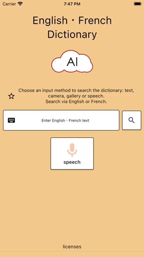 To make searching French meanings easier and quicker, just speak into the device.