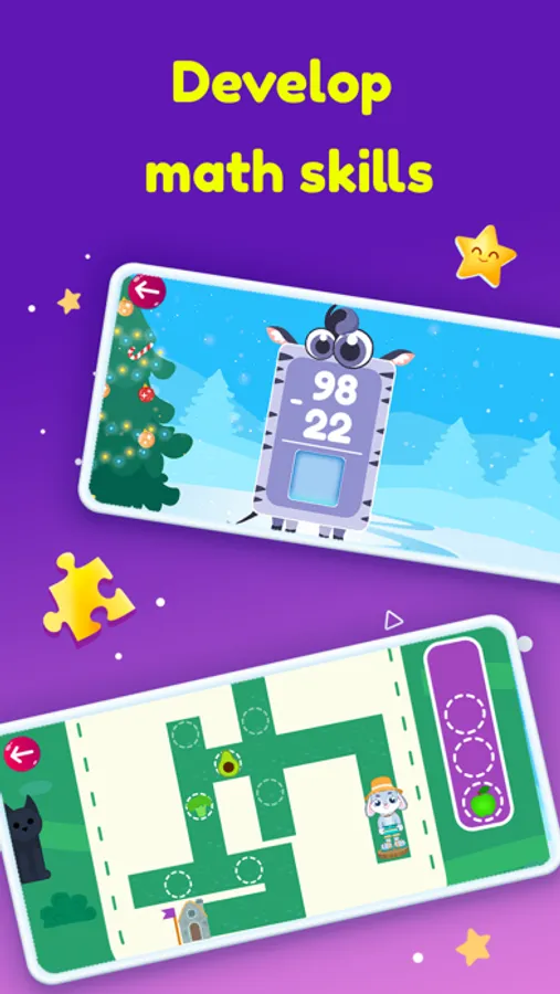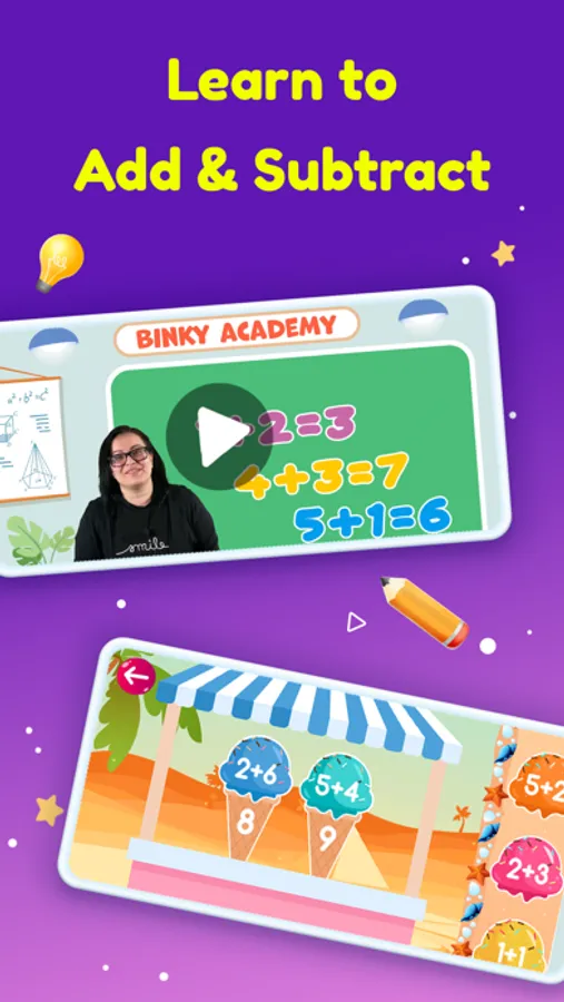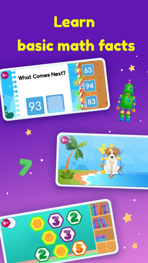 Binky Maths features a number of games that teach while your child plays, including: learn to trace and identify numbers, pronunciation of numbers in English, learn to count objects in this simple games of addition, learn to counting and comparing, precoding, improve in kids mathematics skills for additions, subtraction, including math tasks for 1 grader.
