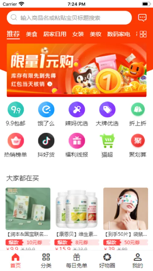 提供电商平台优惠券、折扣服务,用户可通过点金买手APP免费领取商品优惠券,分享优惠券给亲友下单享受推广奖励。