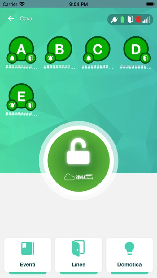 Sima Cloud è la app che ti permette di gestire il tuo sistema di allarme Sima (per esempio, le centrali della serie Versys) comodamente dal tuo telefono, ovunque tu sia. E' sufficiente che il sistema di allarme e il telefono siano connessi ad Internet.