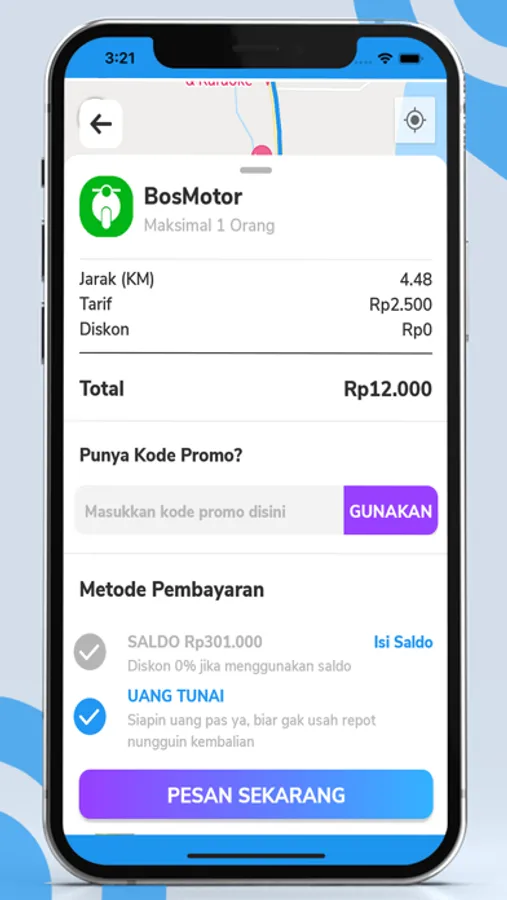 Ini adalah layanan kirim barang dengan motor, kirim barang dengan mudah hanya memerlukan beberapa sentuhan untuk menggunakannya.