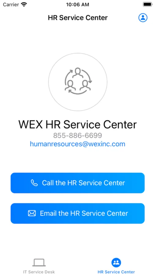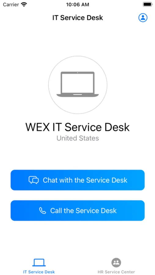 Use the WEX Service Desk app to get help from the service desk. You can start a chat with a representative or start a call the service desk from the app. Once you've registered with your location you will always be routed to the correct number.